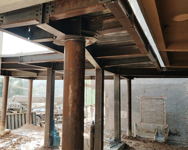方法描述:在结构下部设置钢柱、钢束等物,通过增加支撑点来提高结构的整体承载能力。